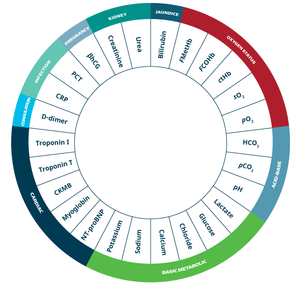Overview of some of the relevant parameters that you can measure with the Radiometer ED POCT solution.